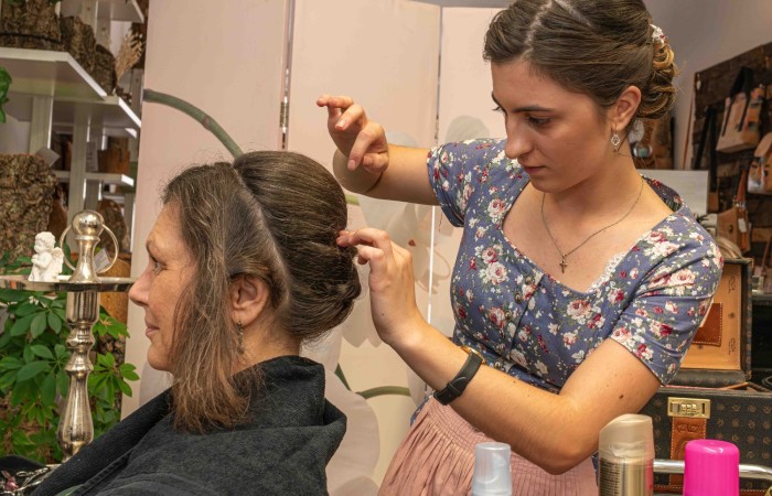 Die frischgebackene Friseur-Gesellin Selina-Maria Braun durfte Frau Aigner für die am Abend stattfindende Freisprechungsfeier der Kreishandwerkerschaft eine passende Frisur erstellen. Wir bedanken uns bei Frau Aigner für ihre Zeit und den regen Gedankenaustausch während ihres Besuches.